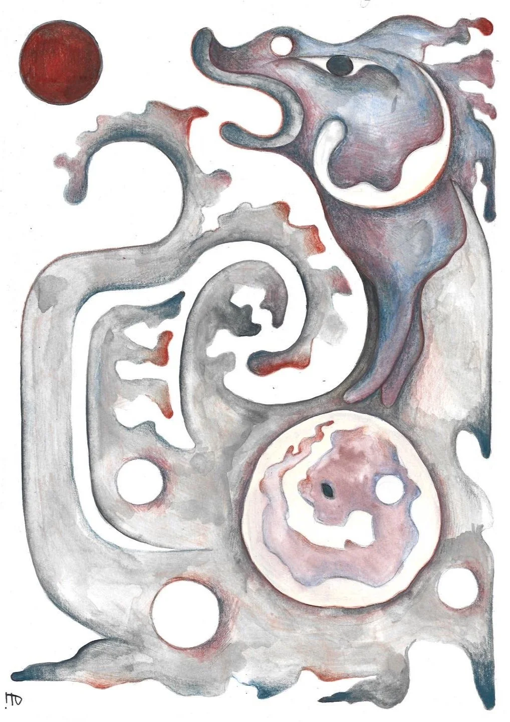 ÉTÉ 2023, EXPLORATIONS DE FORMES, COULEURS ET TECHNIQUES MÊLANT CRAYONS, AQUARELLES, ENCRES, DÉCOUPAGES ET BRODERIES