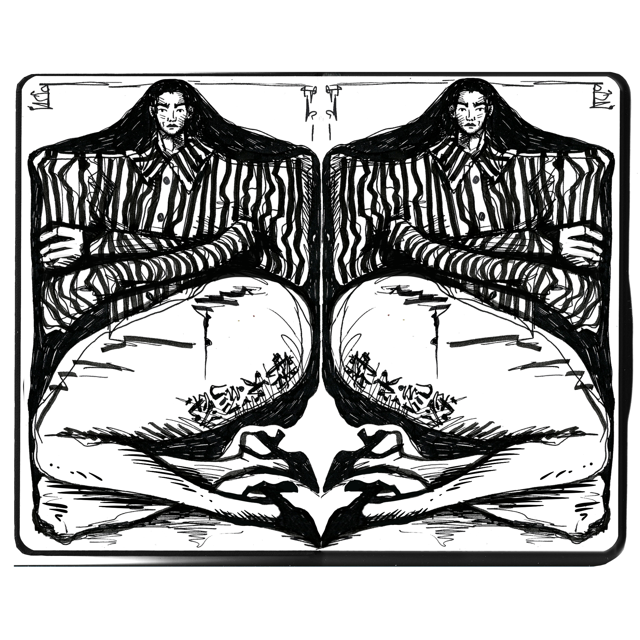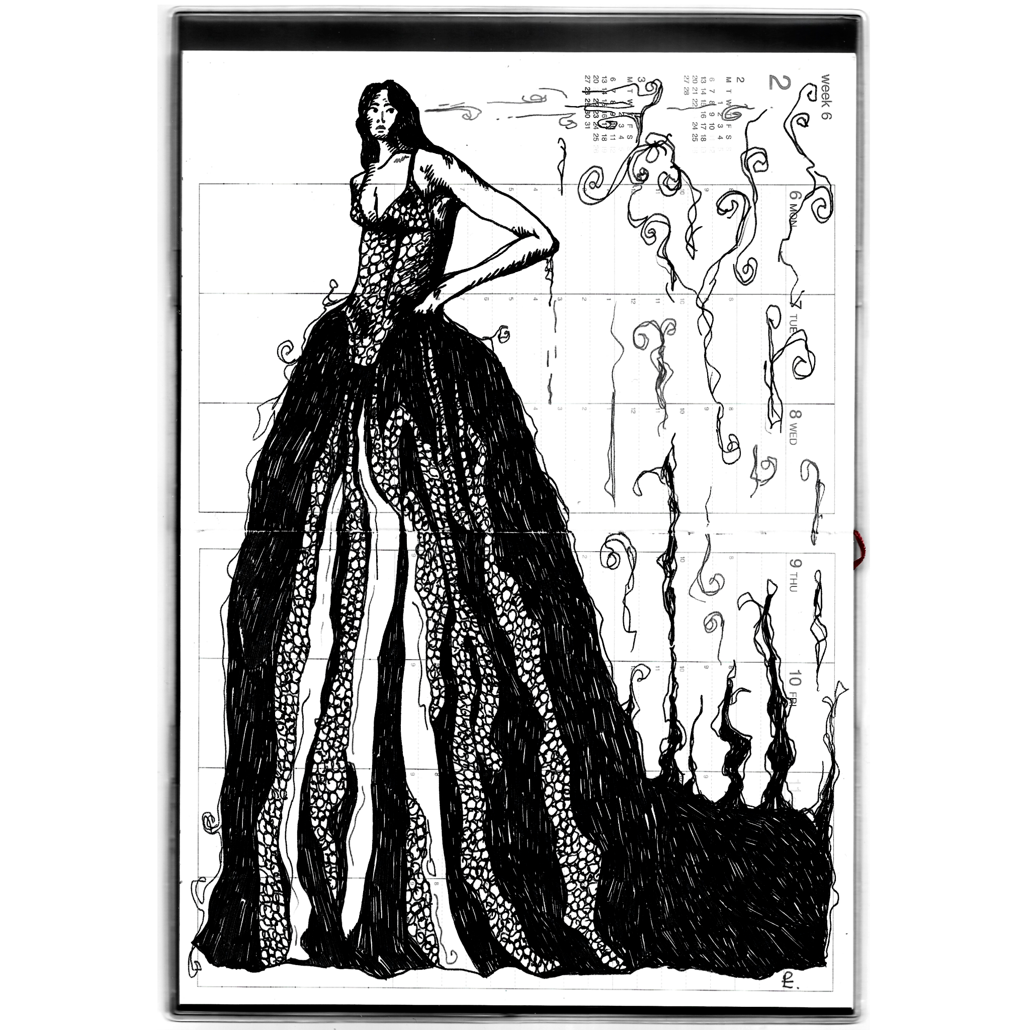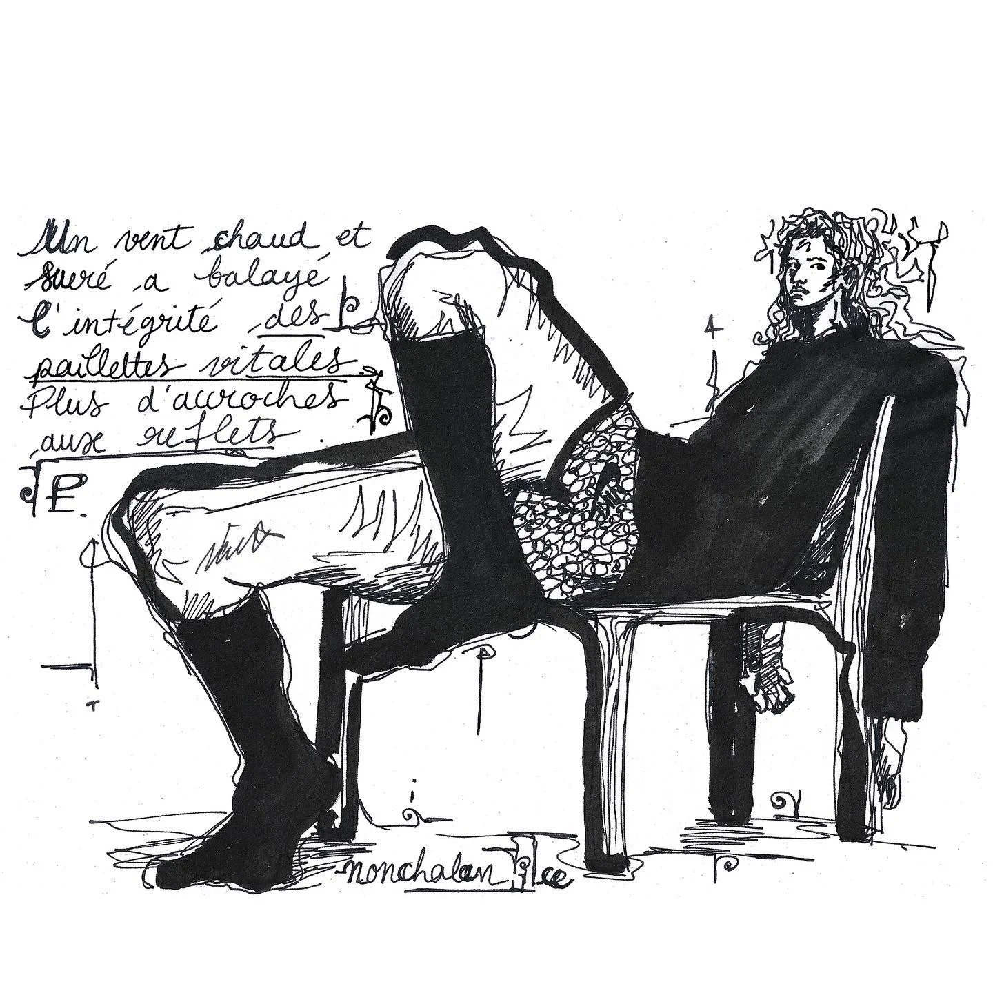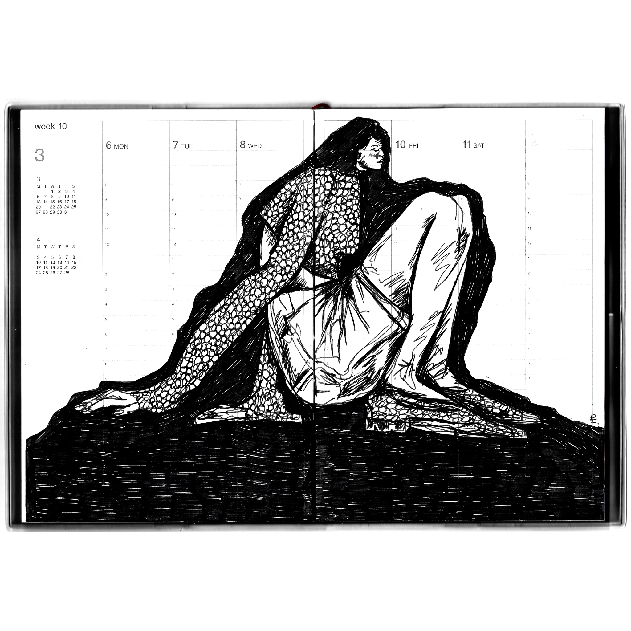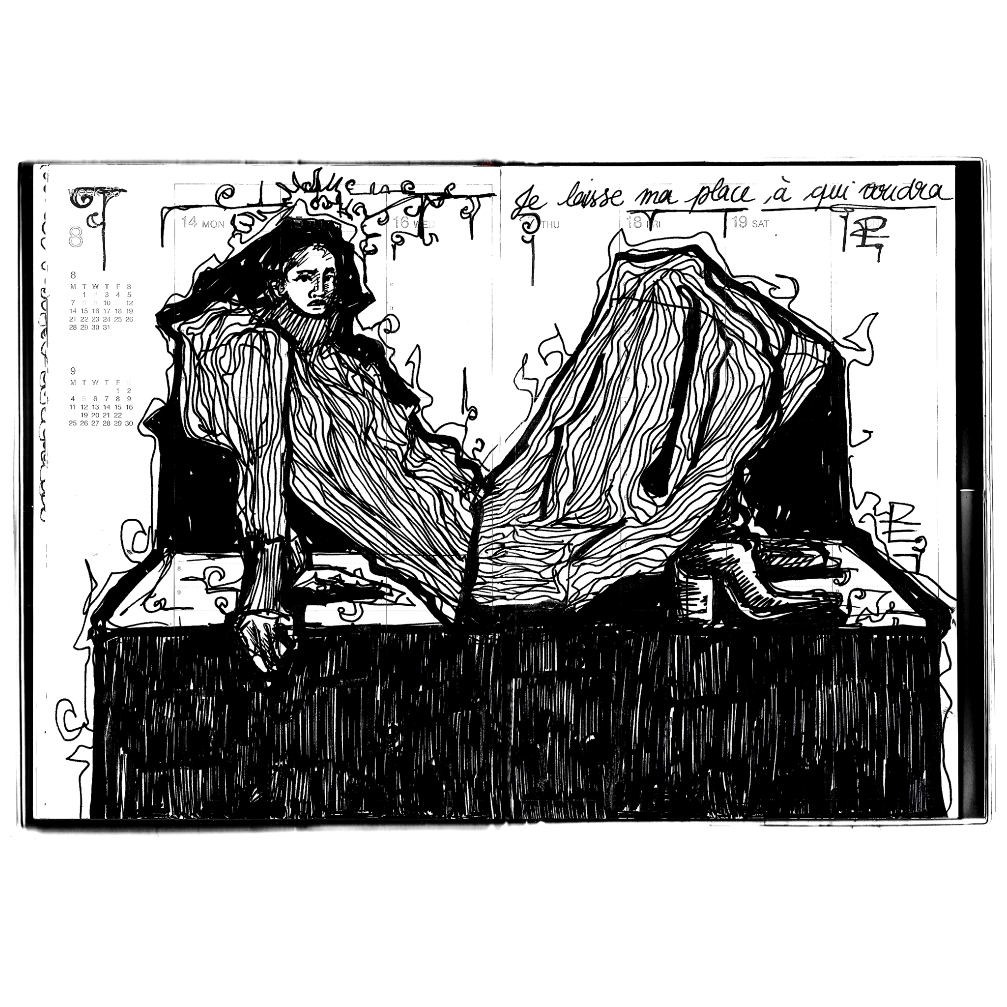 CORPS DÉFORMÉS À L’ENCRE, PARFOIS DU TEXTE, SUR DES FEUILLES D’AGENDAS OU DU PAPIER RECYCLÉ