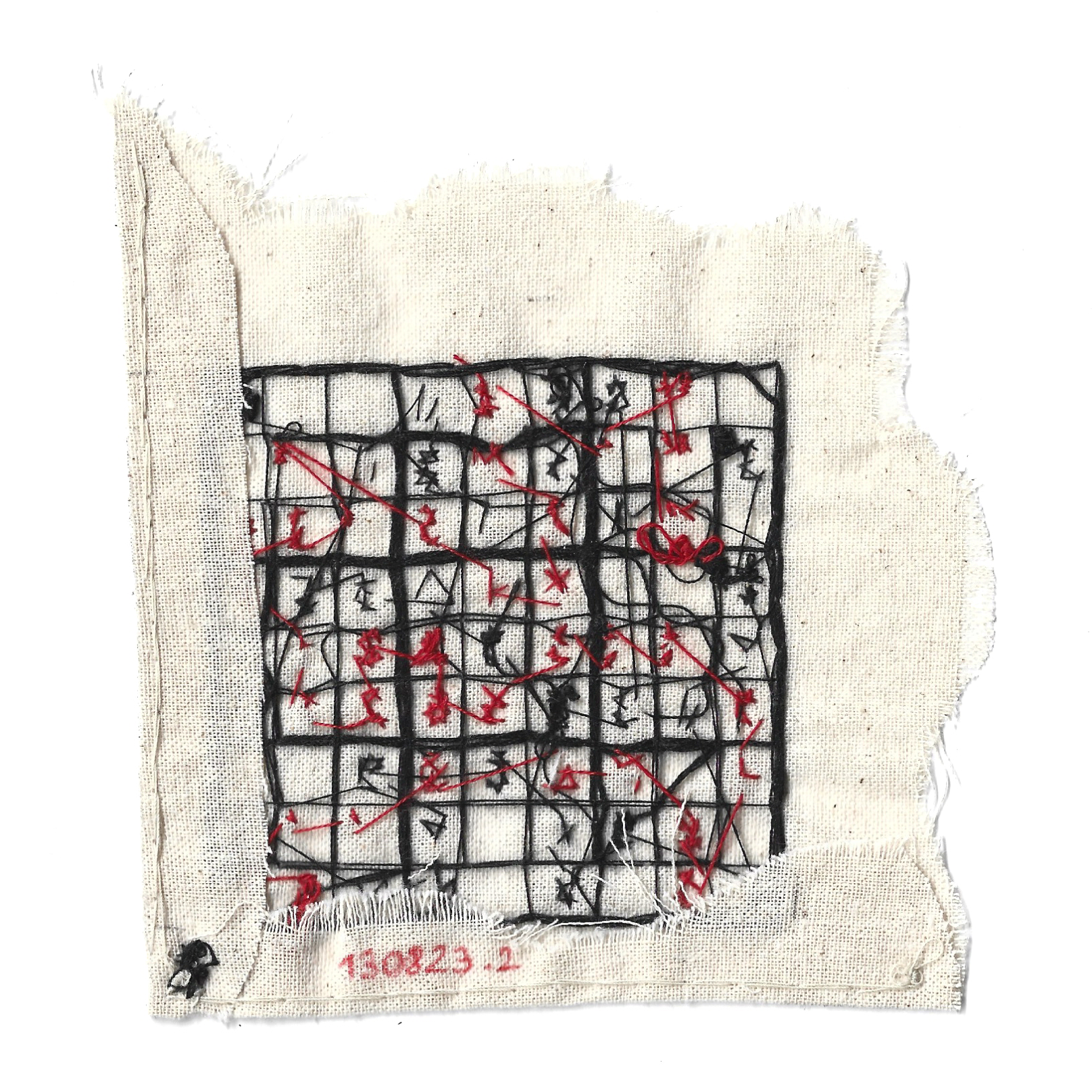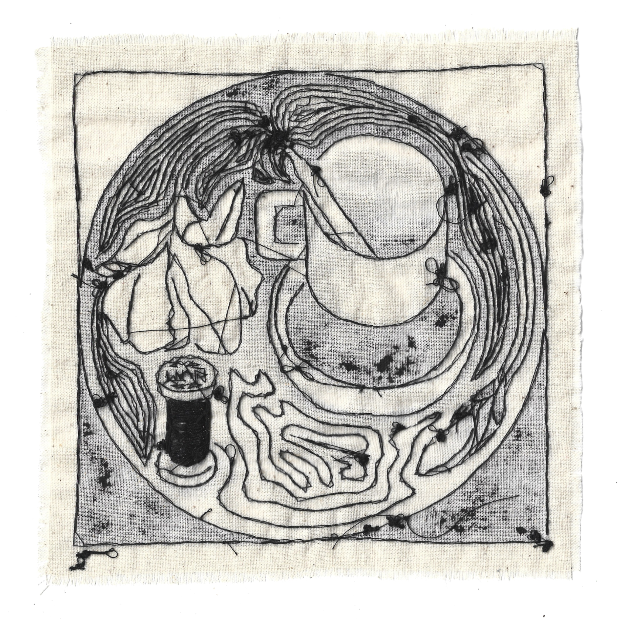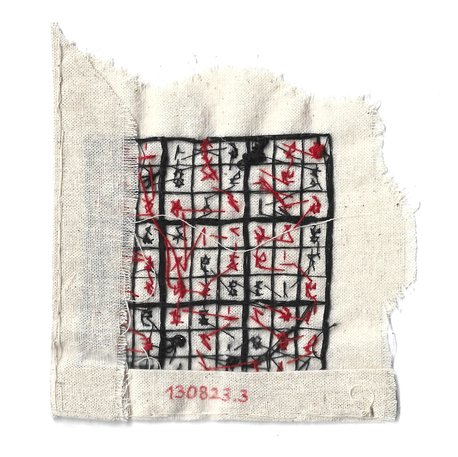 DES DESSINS AU FIL. ENCADRÉS ENTRE DEUX VITRES POUR LAISSER PARAÎTRE L’ENVERS DÉSTRUCTURÉ.